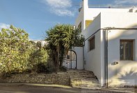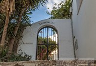 Enter through a wrought iron gate and venture up some steps to the whitewashed apartments above.